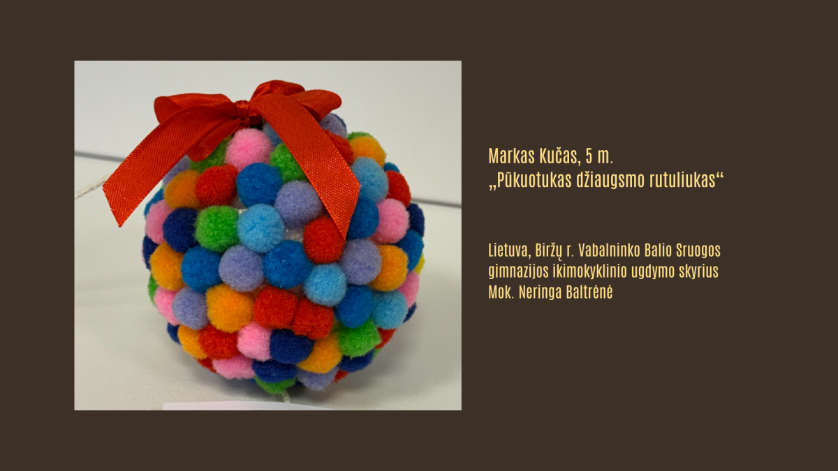 Vabalninko Balio Sruogos gimnazijos ikimokyklinio ugdymo skyriaus mokytojos su savo ugdytiniais dalyvavo tarptautiniame kalėdinio žaisliuko konkurse „Karalių pasaka“ skirtame Mikalojaus Konstantino Čiurlionio 150-osioms gimimo metinėms paminėti, kurį organizavo Vilniaus lietuvių namų Užsienio lietuvių švietimo skyrius. Tad labai džiaugiamės, kad buvome pakviesti dalyvauti ir įvertinti ikimokyklinio ir priešmokyklinio ugdymo grupėje užėmus 2 ir 3 vietas, taip pat buvo įteikti padėkos raštai dalyviams ir jų mokytojoms