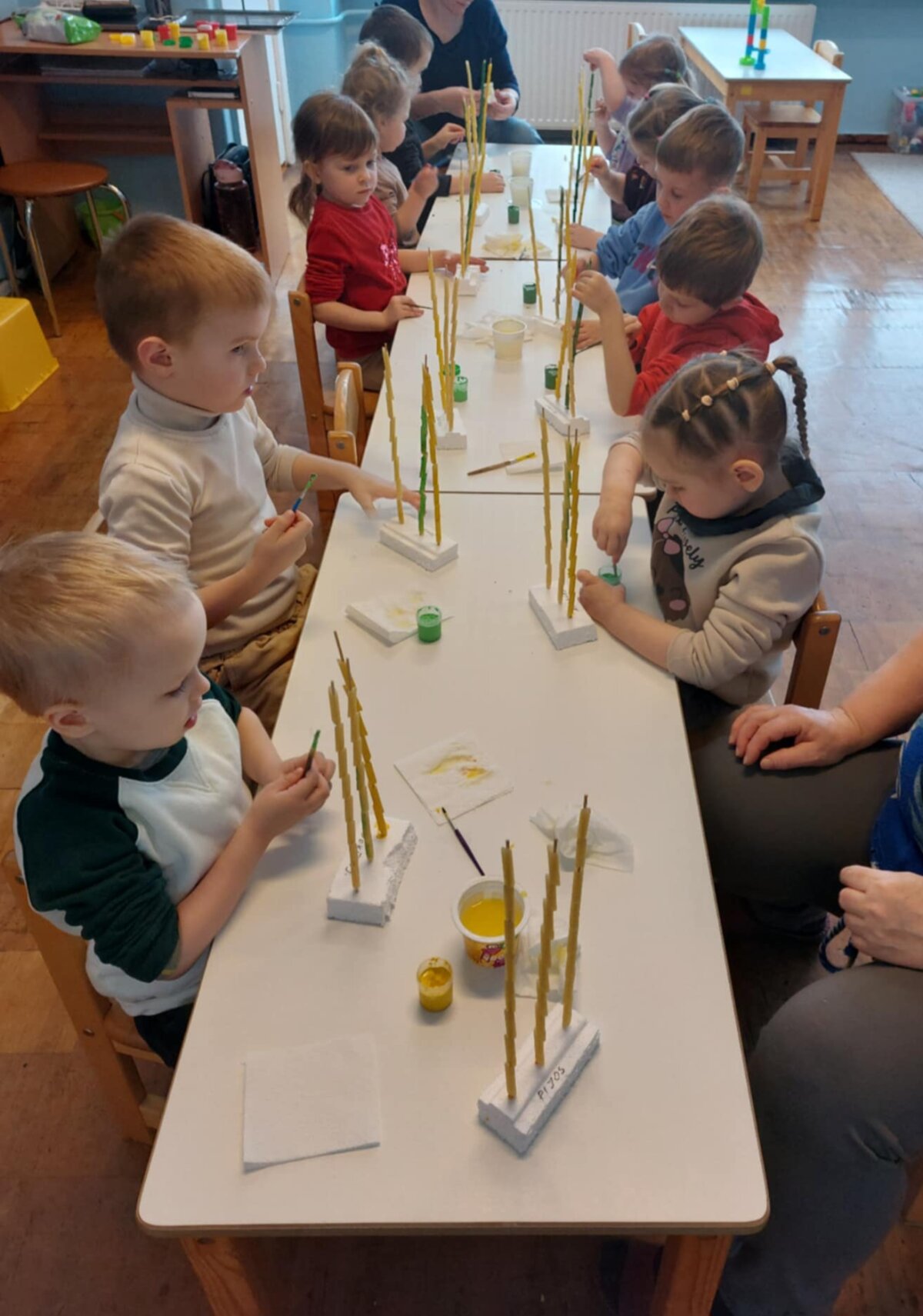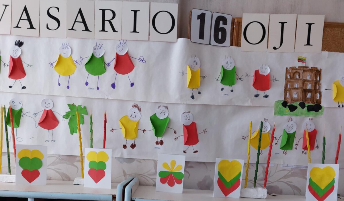 Vasario 16-oji – tai šventė, simbolizuojanti tautos stiprybę, dvasią, viltį, meilę savo Tėvynei. Šiai dienai paminėti mūsų ikimokyklinio ugdymo skyriaus mokytojos su savo ugdytiniais organizavo kūrybinių darbelių parodėlę „Mano Lietuva“. Grupėse vyko įvairios veiklos, kurios skatino paminėti šią svarbią datą. Vaikai panaudodami geltoną, žalią ir raudoną spalvas: statė, bei apklijavo nupieštą Gedimino pilį, spalvino Lietuvos herbą, kūrė atvirukus, dažė žvakeles, o mažiausieji gamino gėlytes, savo rankutes padažę guaše.