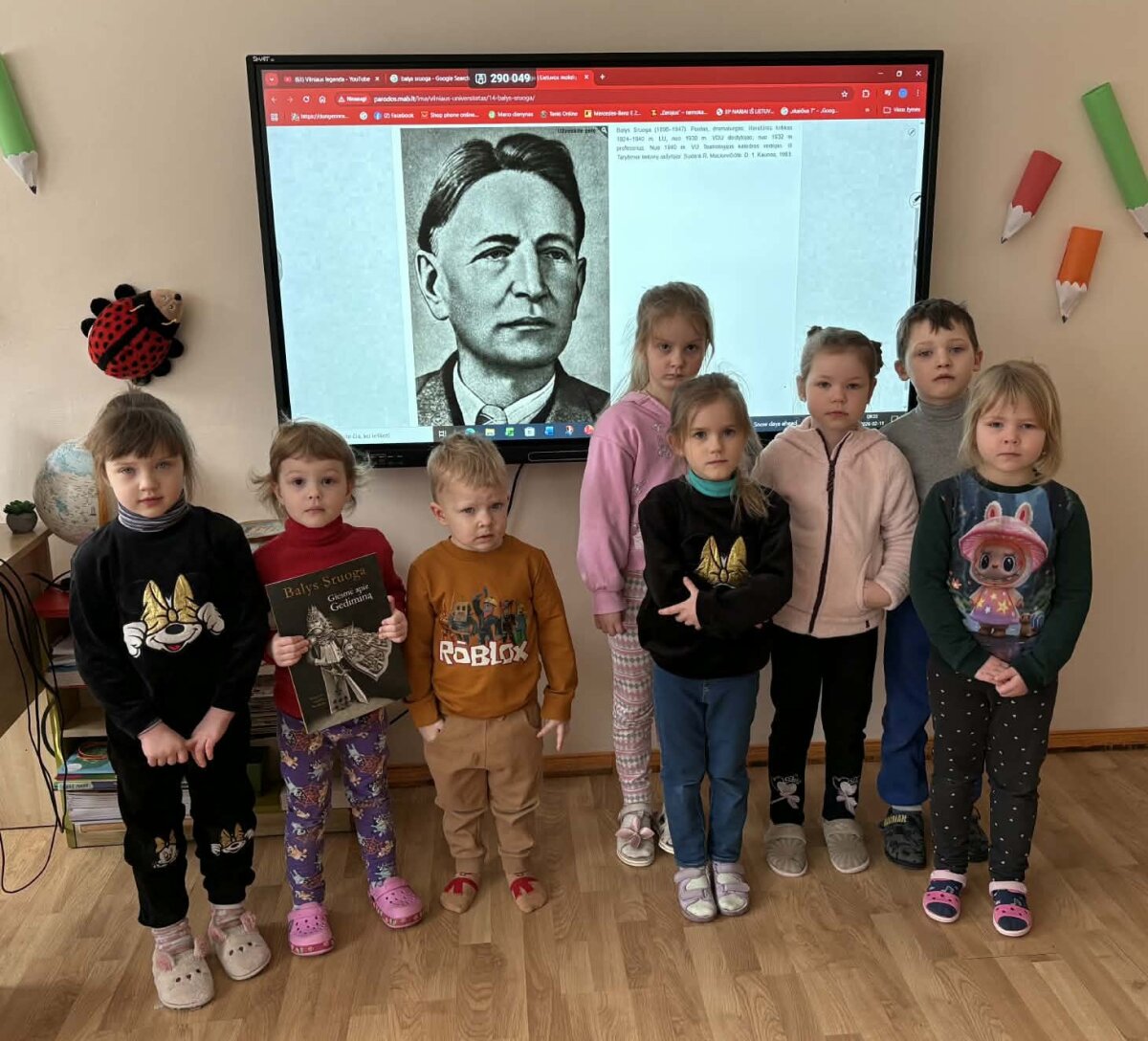 Kad pamokėlės neprailgtų vaikai klausėsi linksmų istorijų iš Baliuko vaikystės. Ugdytiniams labiausiai įsiminė istorija apie Balio kepurę, kurią klasės draugai buvo paslėpę šiukšlių dėžėje. Darželinukai sužinojo, kad mokykloje vaikai šaipydavosi iš Balio aprangos ir vadindavo jį “generolu”. O Balys buvo ne pėsčias - gindavosi kumščiais…