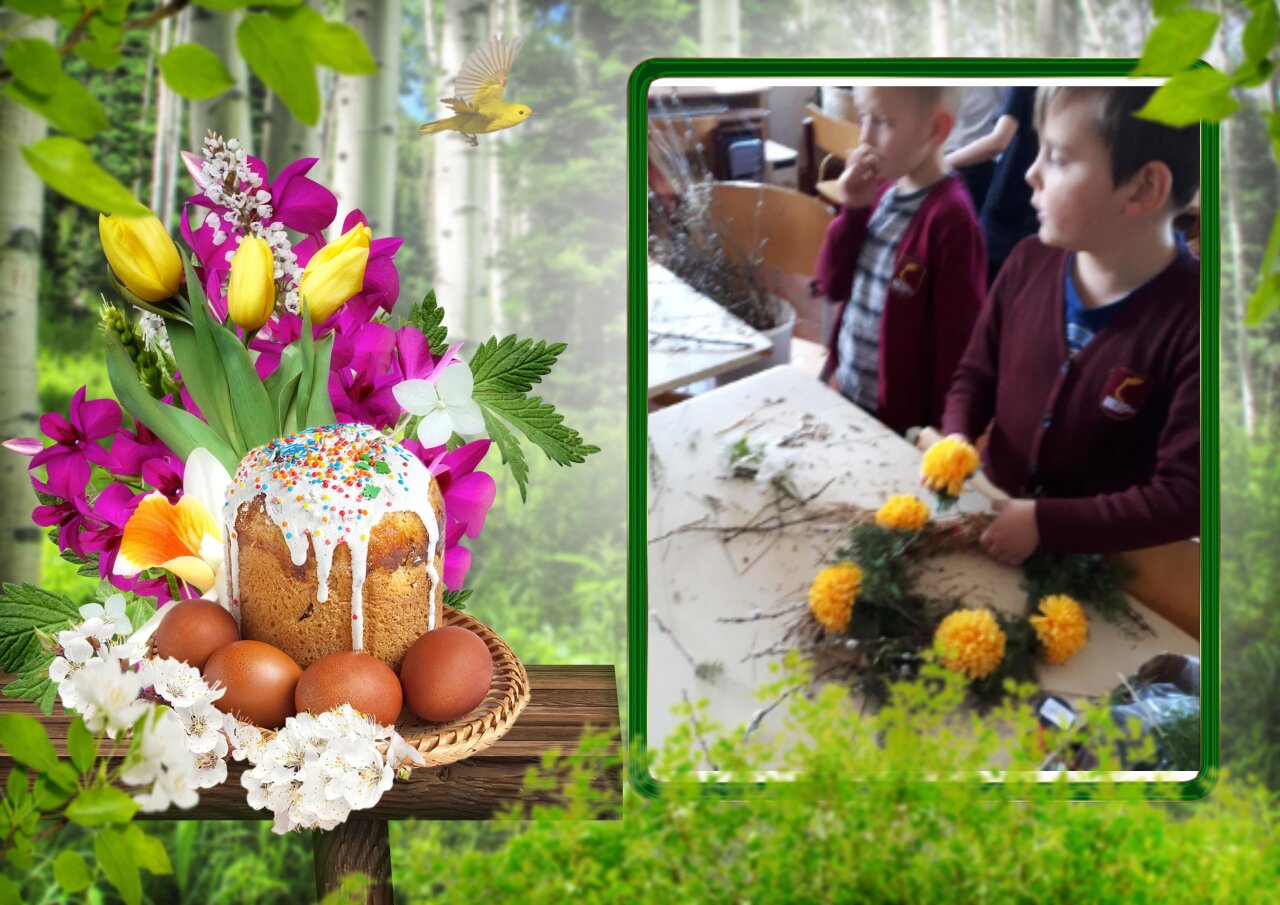 Pradinių klasių mokiniams suteikė daug džiaugsmo pačių pagaminti velykiniai vainikai iš žalumynų: kadagio šakelių, viksvų, džiovintų gėlių, karklo kačiukų ir kt. žalumynų, papuošti pavasarinėmis gėlėmis ir kiškučiais, kuriais kiekvienas juos sukūręs mokinys skubėjo pasipuošti namus.