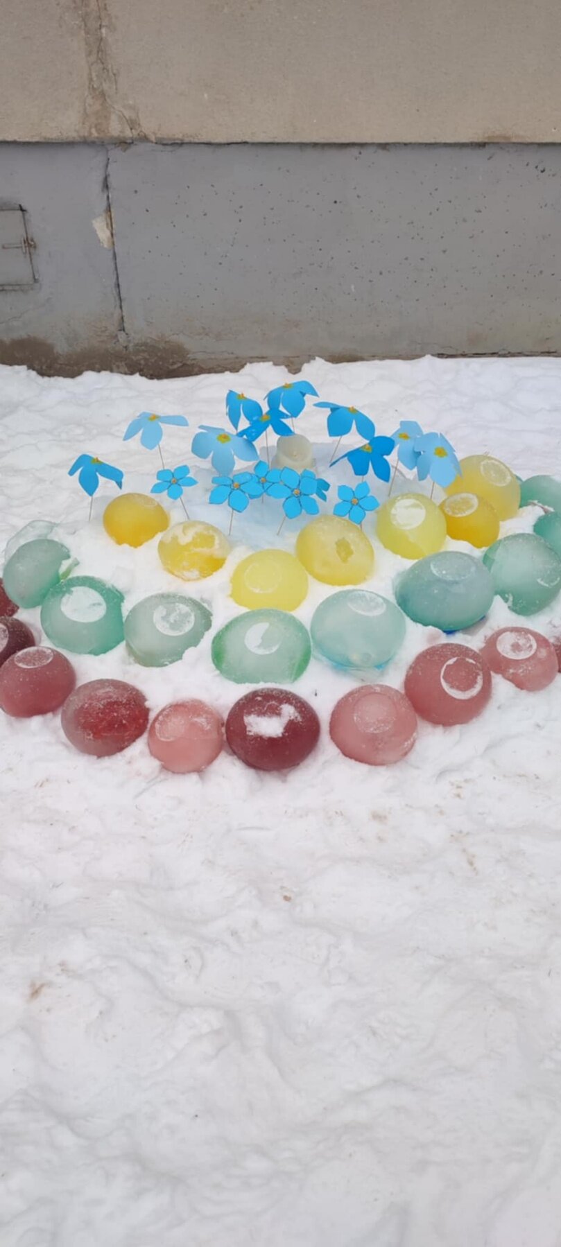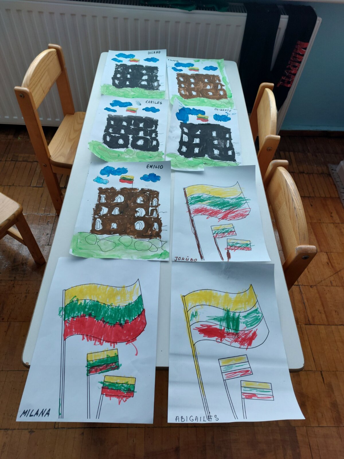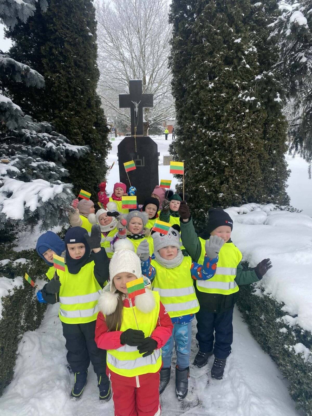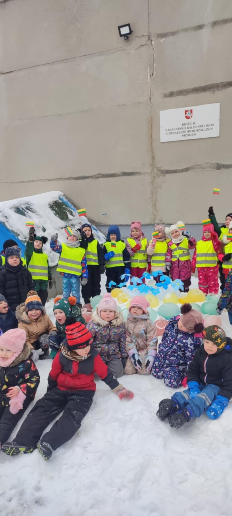 Lauke panaudojant sušalusio ledo gabalėlius buvo sukurta trispalvė vėliava, kurią vaikai papuošė „Neužmirštuolių" žiedais. Ši veikla vaikams suteikė daug džiaugsmo, gerų emocijų ir sukūrė bendruomeniškumo jausmą mažose širdelėse.