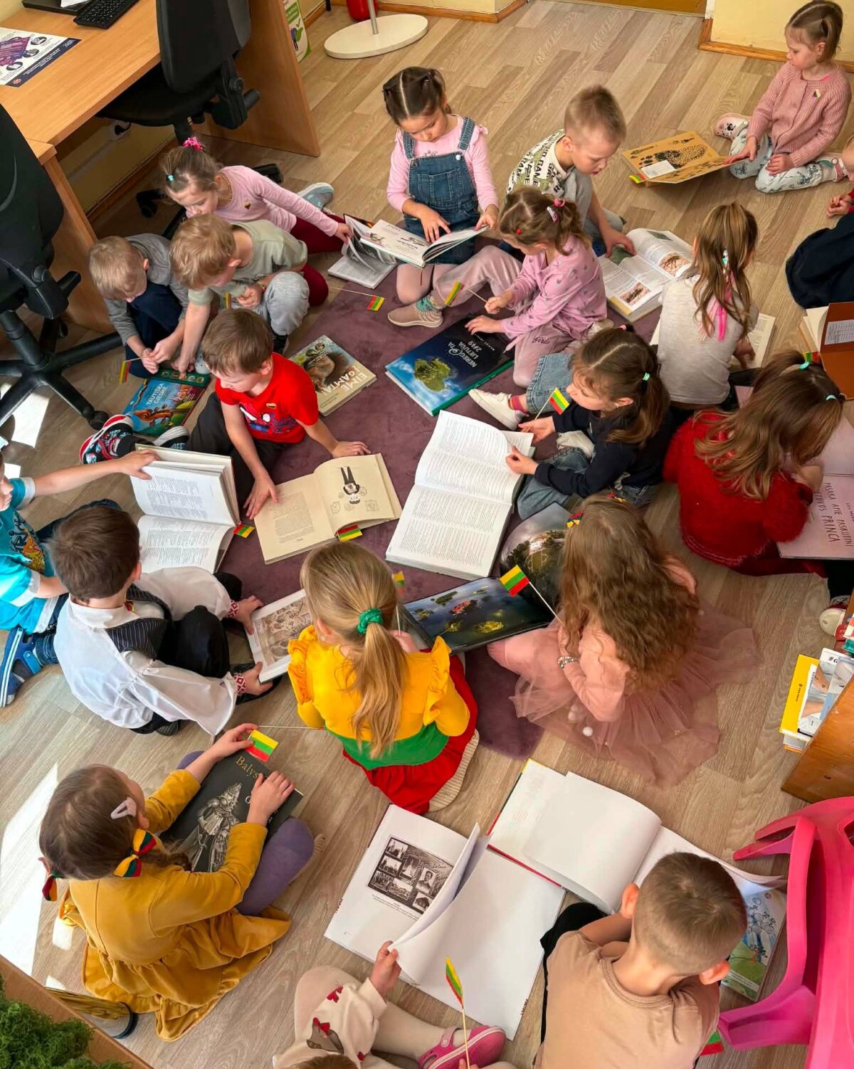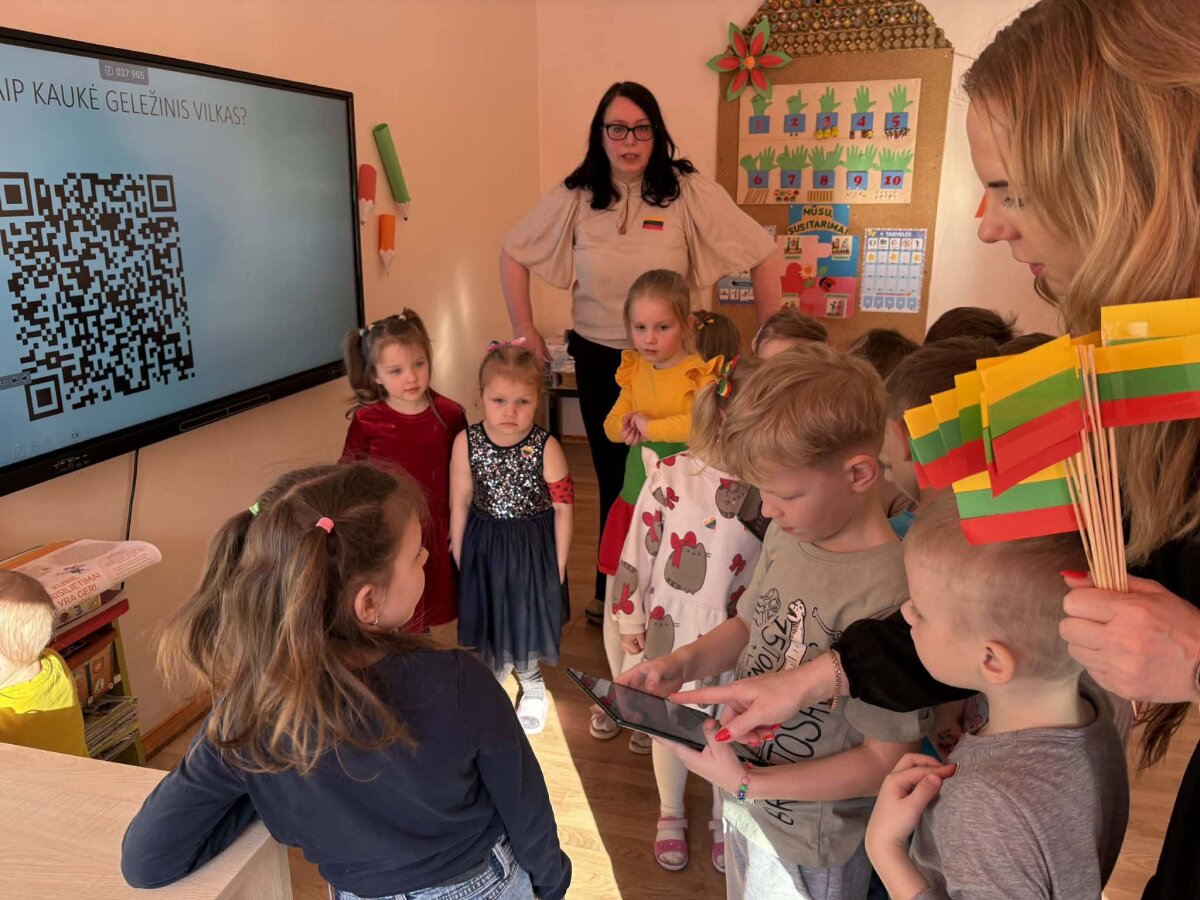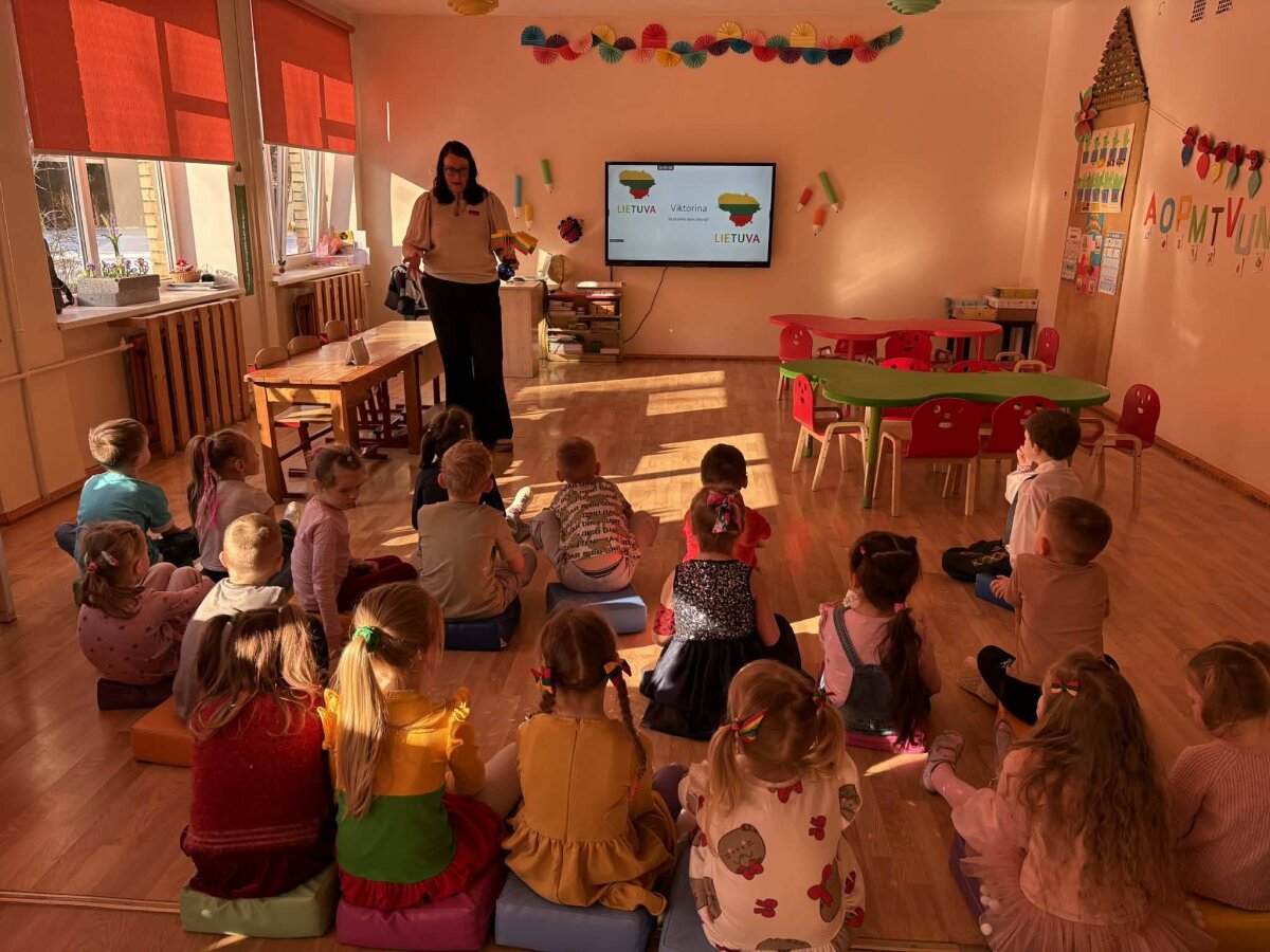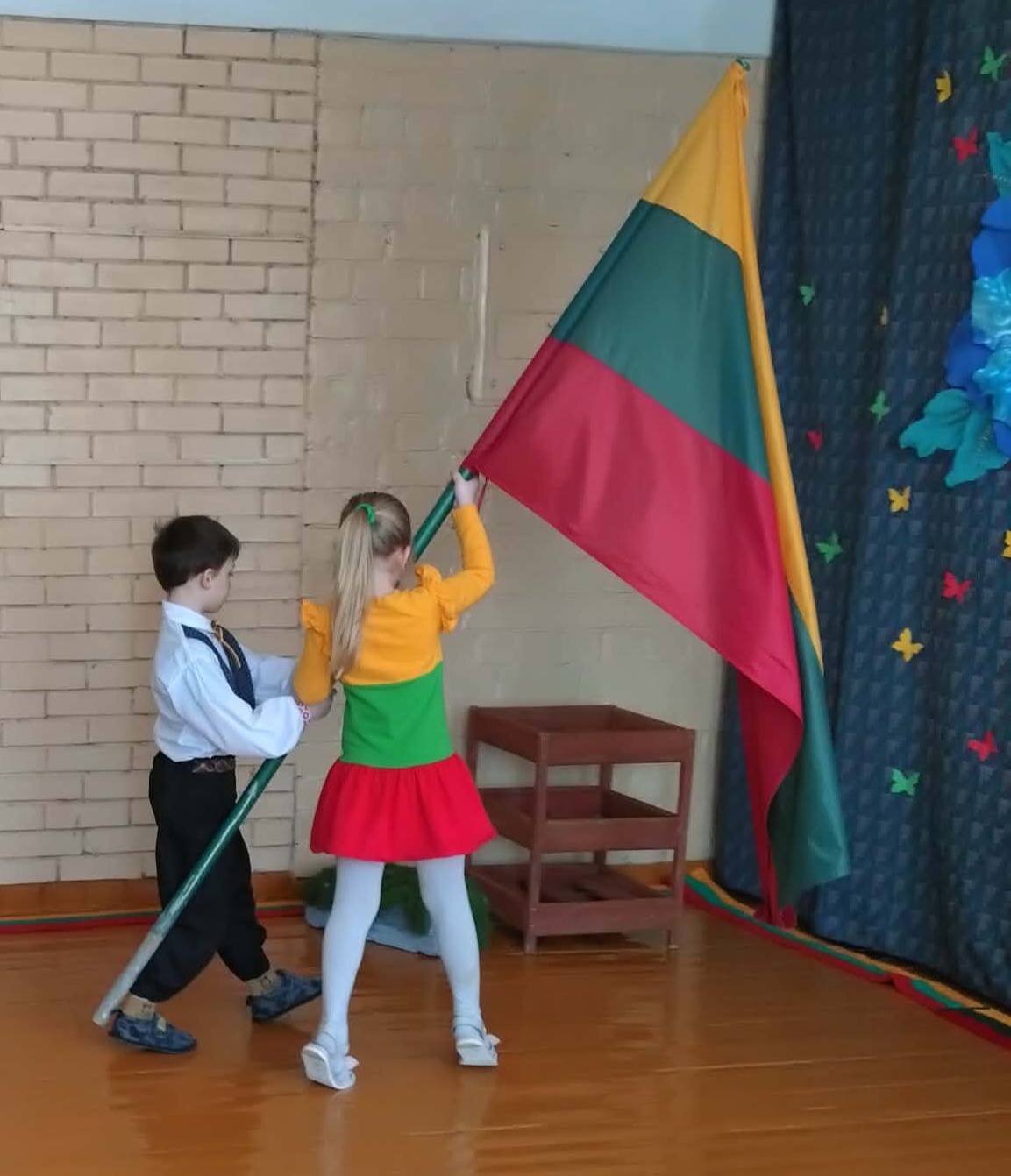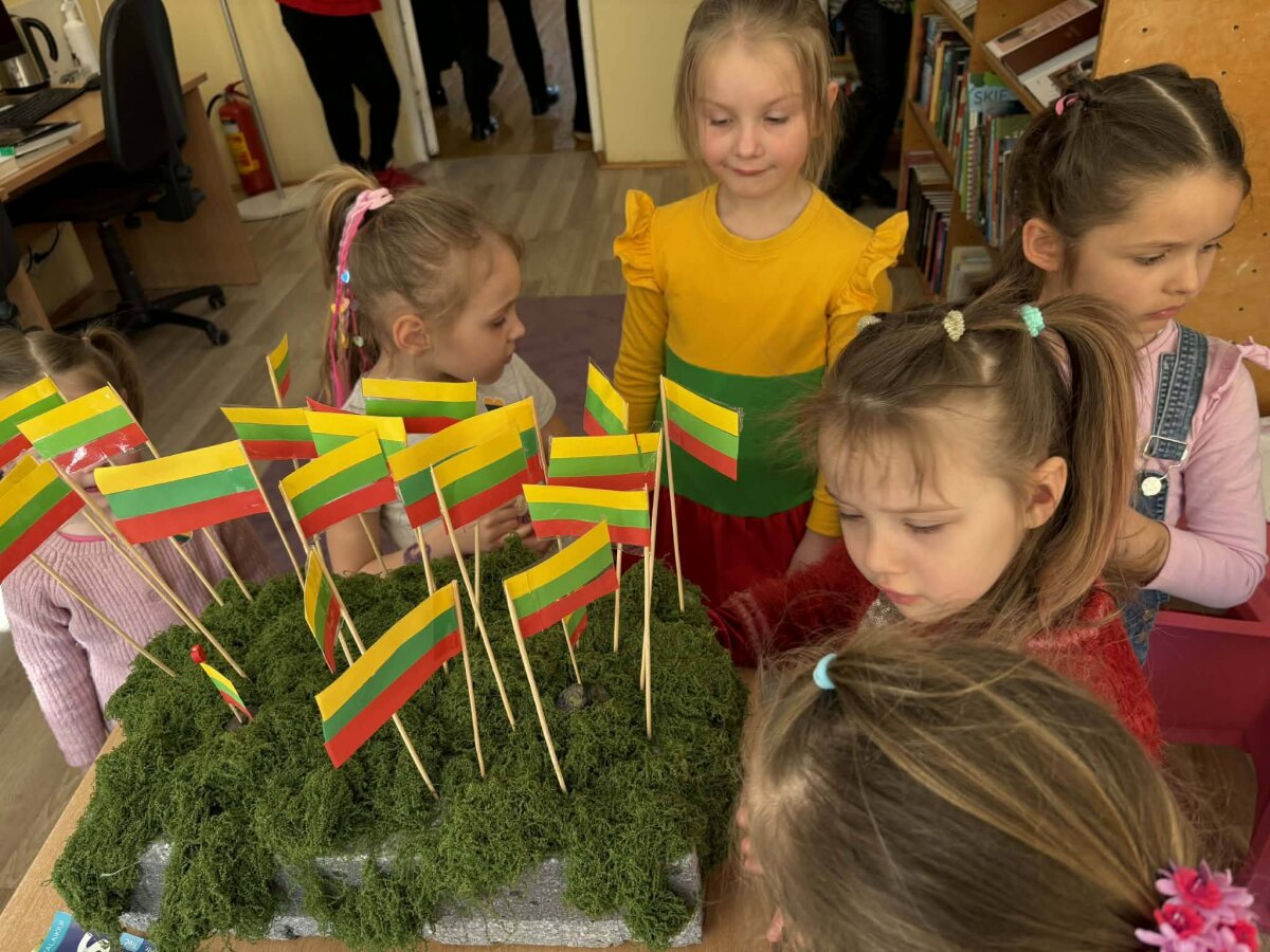Renginį pradėjome iškilmingu Lietuvos vėliavos įnešimu. Sugiedoję himną ir davę draugo priesaiką, leidomės į smagų užduočių maratoną. Keliaudami per įvairias stoteles vaikai minė mįsles, šoko lietuvių liaudies šokius, žaidė smagius žaidimus, bibliotekoje ieškojo knygų apie Lietuvą, dėliojo trispalves vėliavas iš kaladėlių bei dalyvavo viktorinoje.