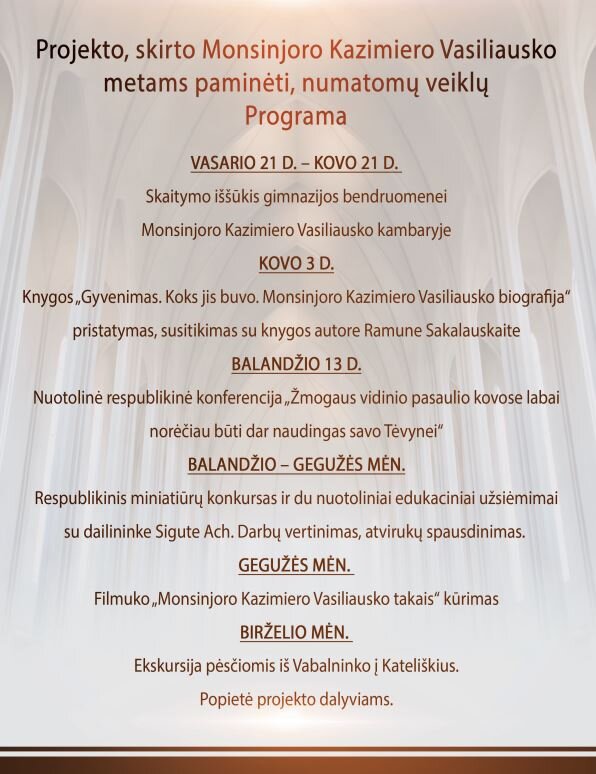 Respublikinės konferencijos „ŽMOGAUS VIDINIO PASAULIO KOVOSE LABAI NORĖČIAU BŪTI DAR NAUDINGAS SAVO TĖVYNEI“, skirta  MONSINJORO KAZIMIERO VASILIAUSKO metams paminėti 2022–05–18 įrašas