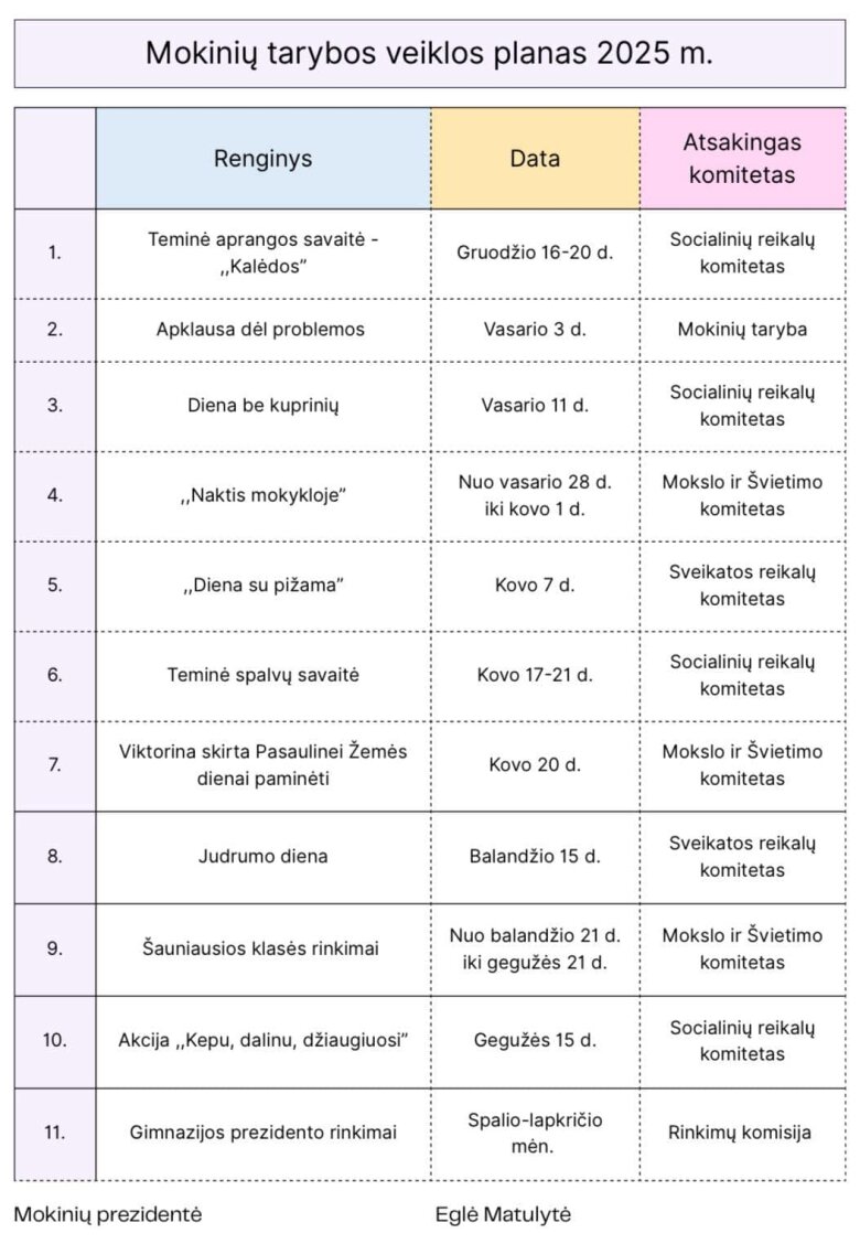 • Formuoja gimnazijos mokinių nuomonę tais klausimais, kuriuos aptaria rajono ar respublikos mokinių savivaldos institucijos.